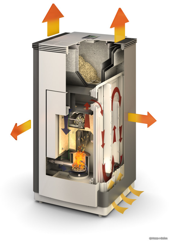 Pelletöfen mit Wärmetauscher statt Konvektionsluftgebläse