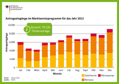 Möglich machte das gute Auszahlungsergebnis die gute Nachfrage nach der Förderung. 18 Prozent mehr Förderanträge gingen beim Bafa ein. Am meisten wurde die Förderung von Biomasseanlagen genutzt. 38.740 Förderanträge für den Bau neuer Hackschnitzelkessel, Pelletskessel und -öfen und oder Scheitholzvergaserkessel hatten die Bafa-Mitarbeiter zu bearbeiten – fast ein Drittel mehr als 2012. Bei fast der Hälfte aller Anträge handelte es sich um welche für Biomasseheizanlagen. “Aus der BAFA-Perspektive hat die Biomasse die Solarthermie mittlerweile als stärkstes Fördersegment abgelöst”, berichtet Schallenberg.