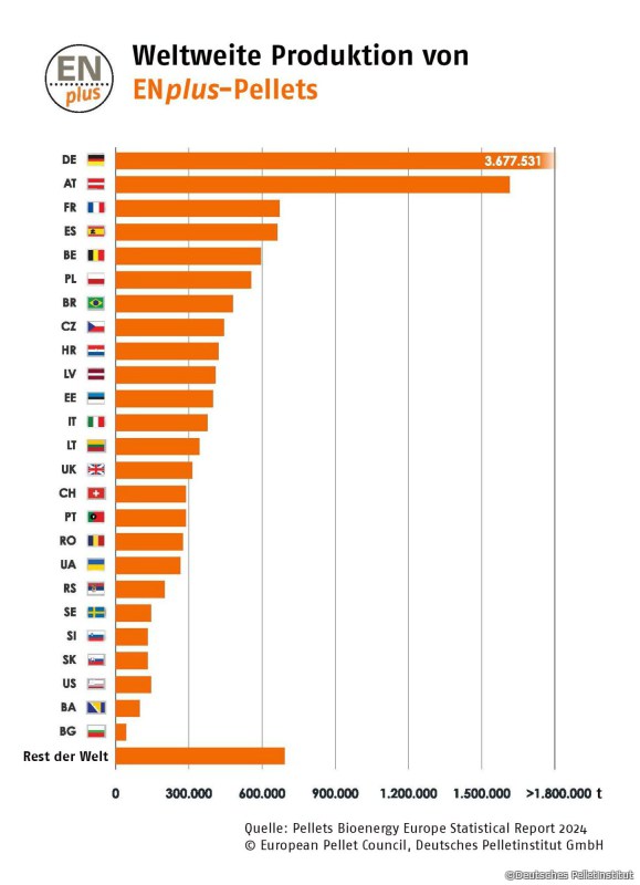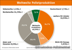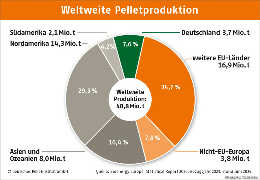 Rund 27 Prozent der 2023 weltweit zertifizierten Premiumpellets wurden in Deutschland hergestellt. Das teilt das Deutsche Pelletinstitut mit.