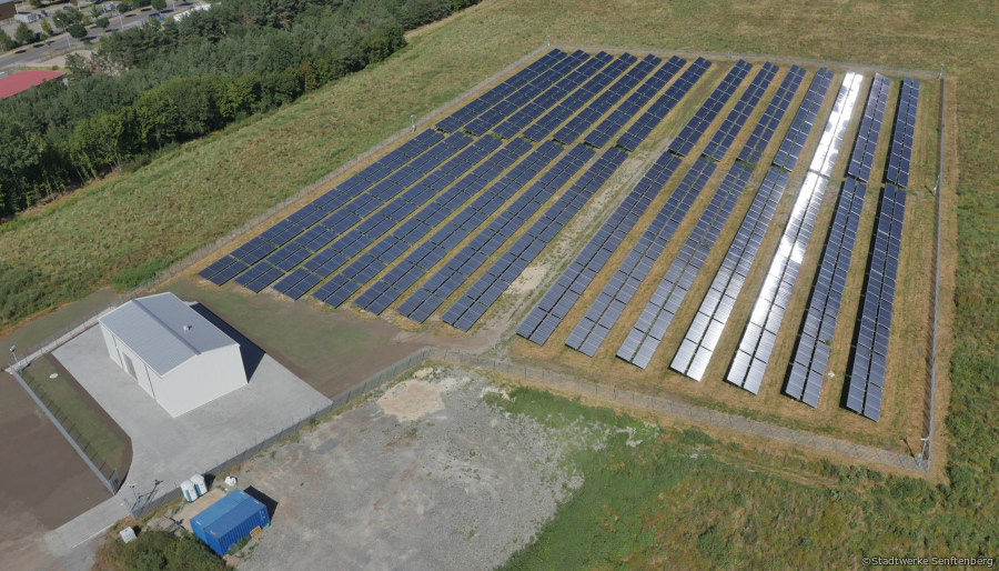 Die Vakuum-Röhrenkollektoren von Ritter XL Solar können Wasser mit Temperaturen von 80 bis 160 Grad Celsius liefern. Eine Vakuumschicht innerhalb der Röhren senkt ihre Wärmeverluste. “Das bedeutet, dass die Kollektoren ganzjährig das Strahlungsangebot der Sonne ausnutzen können”, schreiben die Stadtwerke Senftenberg in einer Presseinformation. Die seit dem 19. August 2016 im Probebetrieb laufende Solarthermieanlage habe bereits in den ersten 14 Tagen über 350 Megawattstunden Sonnenwärme gesammelt und an das kommunale Fernwärmenetz abgegeben. Allein am Wochenende vom 26. bis 28. August 2016 seien Erträge von 85,6 Megawattstunden gemessen worden. Damit habe die Solarthermieanlage, auch dank des hervorragenden Spätsommerwetters, bereits im Probebetrieb ihren ersten Praxistest über die prognostizierte Leistung hinaus bestanden. Der Lausitzer Lokalsender Elsterwelle hat auf Youtube einen Bericht zur Einweihungsfeier veröffentlicht.