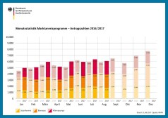 Die Pelletsbranche kann sich weiterhin freuen: Der Monat August hat ihr gute Antragszahlen im Marktanreizprogramm des BAFA beschert. Gegenüber dem Vormonat gingen sechs Prozent mehr Anträge auf Förderung einer Biomasseheizung ein, nachdem bereits der Juli mit einem Plus von fünf Prozent gegenüber dem Juni abgeschnitten hatte. Für Wärmepumpen gingen 27 Prozent mehr Anträge beim BAFA ein als im Vorjahresmonat. Die Solarthermie kommt aus ihrem Loch nicht heraus. Der Rückgang gegenüber dem Vormonat im Jahr 2016 beträgt 21 Prozent. Im Juli schien mit einem Minus von zehn Prozent die Talfahrt abgebremst.
