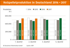 Mit 99,9 Prozent entsprechen laut dem DEPV nahezu alle in Deutschland hergestellten Pellets der Qualitätsklasse ENplus A1. Industrieware mit einem Anteil von 0,1 Prozent an der Pelletsproduktion bezeichnet der Branchenverband als absolutes Randsortiment. Als Hauptrohstoff für die Pelletsproduktion setzen die deutschen Hersteller hauptsächlich Sägerestholz (94 Prozent) ein. Ihr Exportanteil ist im Vergleich zum Vorjahreszeitraum von elf auf 8,6 Prozent gesunken. Der Anteil an Sackware ist mit 21 Prozent gegenüber dem Vorjahr deutlich gestiegen. Er hat sich fast verdoppelt.