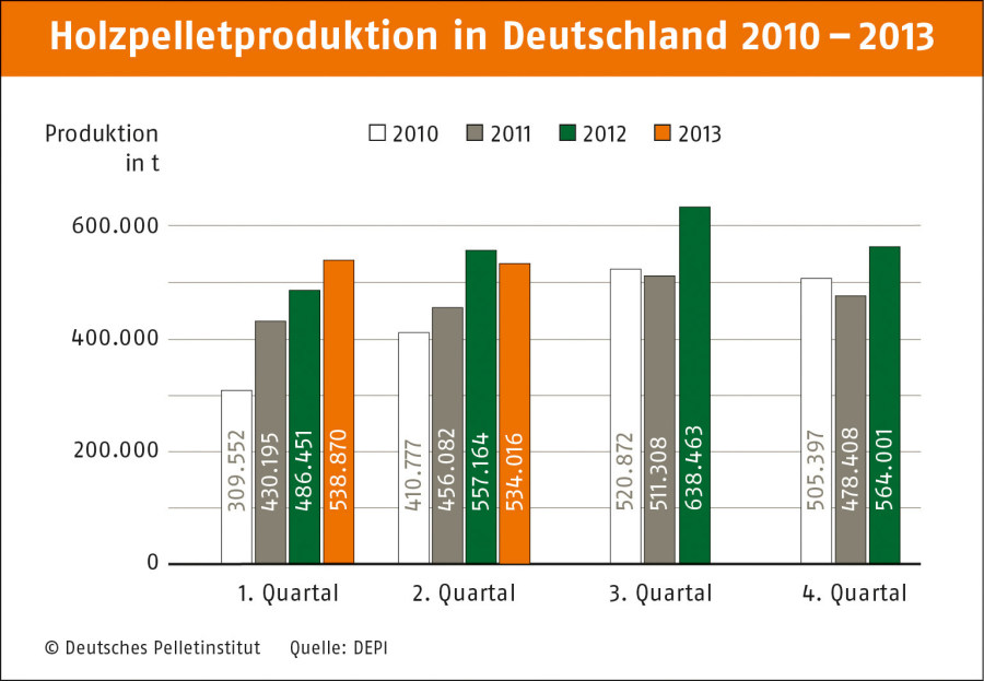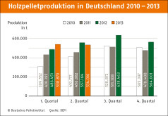 Der DEPV beziffert die Anzahl der Pelletproduzenten in Deutschland auf 37. Sie sind bundesweit an 54 Standorten aktiv. Fünf Hersteller mit einer Menge von über 100.000 t/Jahr erzeugen rd. 60 Prozent der Produktionsmenge. Die in Deutschland produzierte Pelletmenge wird im Auftrag des DEPV monatlich vom Deutschen Pelletinstitut (DEPI) erhoben und quartalsweise veröffentlicht.