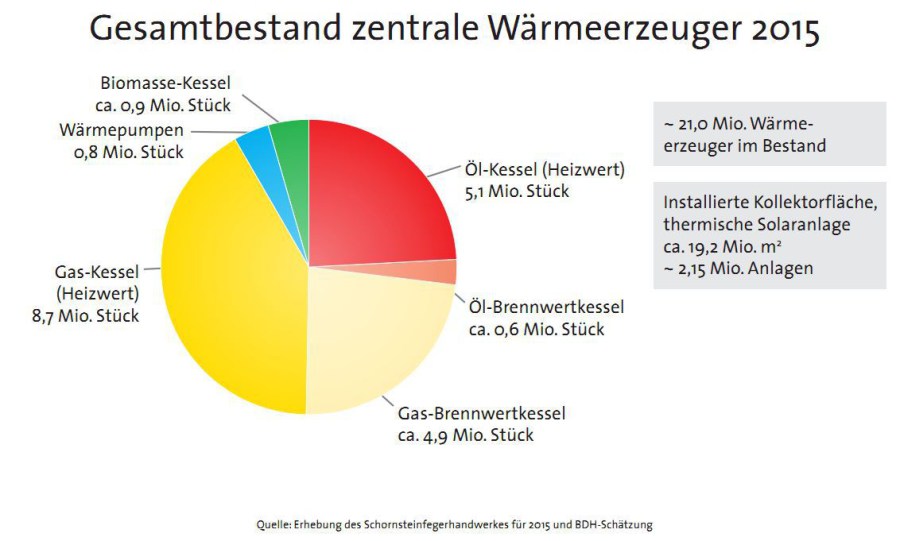 Laut den Verbänden geht die Modernisierung der Heizungsanlagen noch immer zu langsam voran. Beim derzeitigen Modernisierungstempo würde es rund 30 Jahre dauern, die 8,7 Millionen Gas-Heizwertgeräte auszutauschen. Bei den 5,1 Millionen Öl-Heizwertkesseln bräuchte es über 90 Jahre. “Der größte Energieverbrauchssektor Deutschlands, der Wärmemarkt, weist mit Abstand die größten Energieeinspar- und Kohlendioxid-Minderungspotenziale auf”, sagt BDH-Hauptgeschäftsführer Andreas Lücke. Würden die annähernd 14 Millionen veralteten Heizungsanlagen modernisiert, könnten 13 Prozent des deutschen Energieverbrauchs eingespart werden.