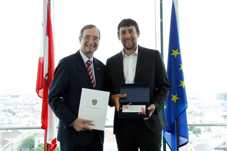 Wirtschaftskammer-Präsident Dr. Christoph Leitl überreichte den renommierten Exportpreis in Wien an ÖkoFEN Geschäftsführer Stefan Ortner. „Wir sind sehr stolz über die Auszeichnung und sehen sie als Bestätigung unserer Bemühungen auf dem Weg zur Nr. 1 am Weltmarkt für Pelletsheizungen. Zugleich ist der Preis auch Motivation für uns und unsere Mitarbeiter, durch fortwährende Forschung und Entwicklung innovative Lösungen unserer Qualitätsprodukte zu präsentieren“, so Stefan Ortner bei der Preisübergabe.