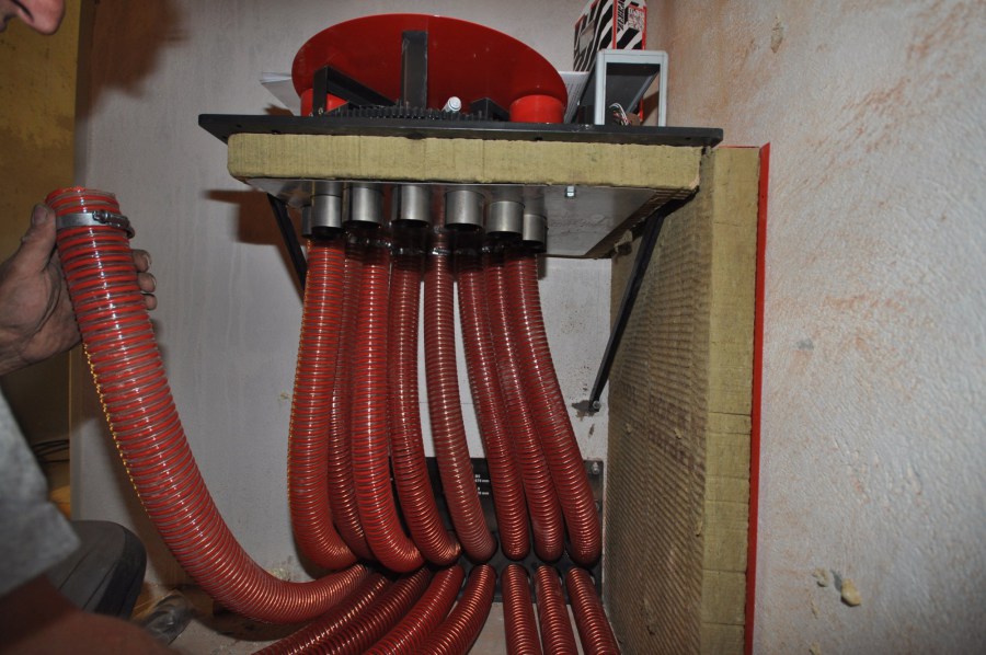 Für die Lagerung der Pellets wurde der alte Öltankraum einfach in einen Pellets-Lagerraum umfunktioniert. Durch den Einsatz des 8-Sonden Windhager Saugsystems kann dieser vollflächig, ohne die Anbringung von Raumschrägen genutzt werden. Der alte Öltankraum bietet damit ausreichend Platz für den Pellets-Jahresbedarf von 14 bis 16 Tonnen.