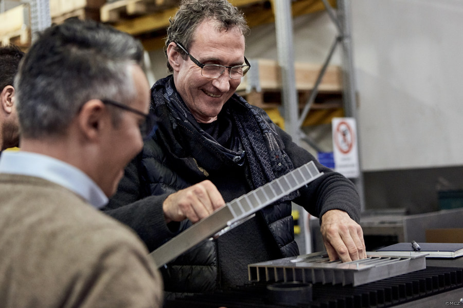 Dreidimensionale Animationen und Photoshop beschönigen leicht und schaffen eine Illusion, während Stahl, Aluminium und alle echten Materialien keine Ungenauigkeiten oder Fantastereien erlauben. So sind wir Designer von den Ingenieuren und ihrer Erfahrung abhängig. Für mich war es eine Freude, mit hervorragenden Fachleuten zusammenzuarbeiten, die mir geholfen haben, Lösungen für technische Probleme, aber auch für einige ästhetische Fragen zu finden. Manchmal kostet es mich echte Anstrengung, die jeweilige technische Abteilung von der Notwendigkeit bestimmter Details zu überzeugen, aber mit den Leuten von MCZ war sofort ein Einklang da.