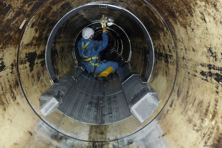 Die Hauptenergiequelle für das Wohnquartier liegt nur wenige Meter außerhalb – treffenderweise unter der Äußeren Kanalstraße. Auf einer Länge von 120 Metern entzieht ein Wärmetauscher dem vorbeirauschenden Abwasser Energie. Abwasser als Energiequelle bringt zwei wesentliche Vorteile mit sich: „Zum Ersten ist es gerade im Winter mit mindestens zehn bis zwölf Grad eine vergleichsweise energiereiche und verlässliche Wärmequelle. Zum Zweiten steht diese Energie passend zum Wärmebedarf zur Verfügung, denn gerade im urbanen Raum, wo viel Wärme benötigt wird, fällt besonders viel Abwasserwärme an“, erklärt Geschäftsführer Stephan von Bothmer von der Firma Uhrig Energie, die den Wärmetauscher herstellt. Mit rund 12,6 Millionen Euro aus der öffentlichen Wohnraumförderung unterstützt Nordrhein-Westfalen das Projekt.