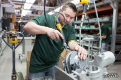 350.000 Euro hat die KWB GmbH in eine neue Fertigungslinie in St. Margarethen investiert, um ihren Mitarbeitern auf die eigenen Bedürfnisse zugeschnittene Arbeitsplätze bieten zu können. Herzstück der neuen Arbeitsplätze ist die Schraubtechnik. Aus der unternehmenseigenen Entwicklungsabteilung erhalten die Mitarbeitenden in der Produktion die Vorgaben, welche Schrauben sie mit wie viel Newtonmetern anziehen müssen. Mit diesen Daten wird die Schraubtechnik programmiert. Die Mitarbeiterinnen und Mitarbeiter müssen die Schrauber dann nur ansetzen – ohne Kraftaufwand werden alle Schrauben exakt mit den vorgegebenen Newtonmetern angezogen.