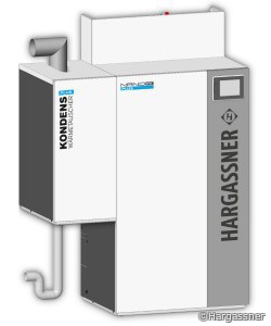 Brennwertkessel heizen deshalb effizient, weil sie die im Wasserdampf des Abgases enthaltene Wärme nutzen. Während sie bei Niedertemperaturkessel ungenutzt durch den Schornstein verschwindet, kann sie ein Brennwertgerät für die Heizung gewinnen. Dazu wird das Abgas über einen vom Heizungsrücklauf durchflossenen Wärmetauscher im Kessel geleitet, an dem der Wasserdampf kondensiert und dabei seine Wärme abgibt. Bei Hargassner hängt der Kondensationswärmeübertrager an der Seite des Nano-PK Plus. Das Kondensationsmodul lässt sich jederzeit nachrüsten. Die Komponenten des Kessels wurden so angeordnet, dass sie einfach von vorne erreicht werden können.