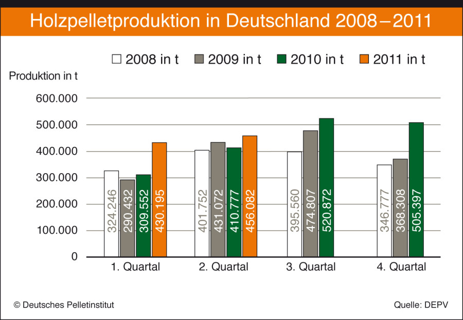 Knapp 70 Prozent der im zweiten Quartal 2011 produzierten Pellets wurden nach Auskunft der Hersteller auch in Deutschland abgesetzt. Zur Erhöhung der Wertschöpfung würde die Branche den Inlandsverbrauch gerne weiter erhöhen.