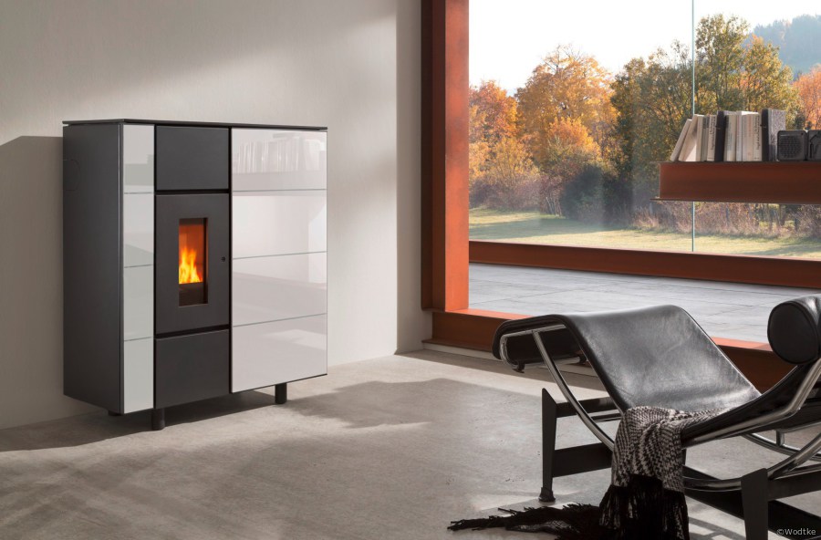 Der Ixbase vereint effiziente Wärmetechnologie – er lässt sich auch raumluftunabhängig betreiben – mit moderner Steuerungstechnik und bequemer Bedienung. Zahlreiche individuelle Einstellungen lassen sich entweder über ein Berührfeld oder über die Wodtke-App FireTouch im heimischen WLAN-Netz vornehmen. Über Internet kann der Ixbase weltweit über ein beliebiges Gerät mit Webbrowser, zum Beispiel einen Computer oder ein Smartphone, gesteuert beziehungsweise an- oder abgeschaltet werden. Der integrierte Raum- und Uhrenthermostat regelt im Automatikbetrieb die Leistung. Die aktuelle Raumtemperatur erhält er von einem solarbetriebenen Raumfühler. Der Ixbase-Pelletsofen heizt mit Nennwärmeleistungen von fünf oder sechs Kilowatt. Er weiß nicht nur optisch zu überzeugen. Mit einer eingebauten Batterie kann er Stromausfälle bis zu 24 Stunden überbrücken.