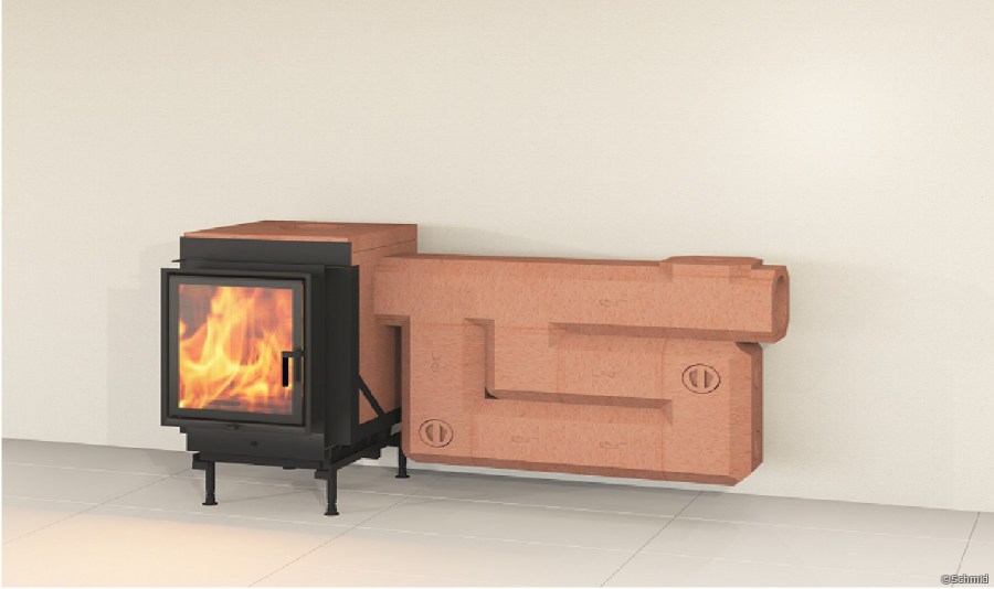 Die Wärme des Kaminfeuers bestmöglich ausnutzen – das funktioniert mit dem Schmid Speichersystem. Es lässt sich an jedes Kamin- oder Ofenmodell anpassen.