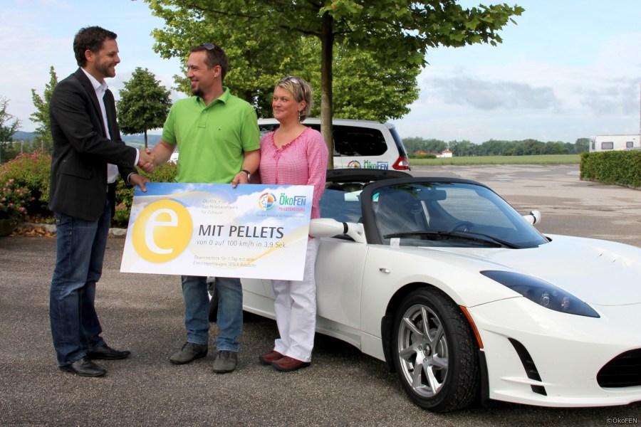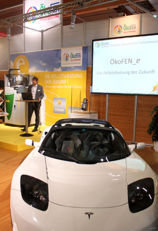 ÖkoFEN ist einer der führenden Spezialisten für Pelletsheizungen in Europa und entwickelt derzeit die erste Strom erzeugende Pelletsheizung. Im Rahmen der erstmaligen Präsentation dieser Heizung auf der Energiesparmesse Wels wurde ein Testtag mit dem Elektrosportwagen Tesla Roadster verlost.