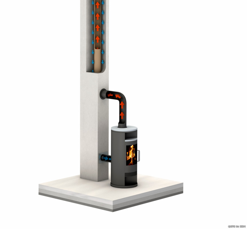 Bei LAS steckt ein Rohr im Rohr. Durch das eine können die Abgase aus der Feuerung abziehen, durch das andere strömt Außenluft herein, heizt das Feuer an und hält es am Lodern. Aufwendige Baumaßnahmen wie separate Lüftungskanäle zum Kaminofen braucht es in diesem Fall nicht. Positiver Nebeneffekt: Die einströmende Luft wird durch das ausströmende Abgas erwärmt. „Diese Vorwärmung steigert die Effizienz des Brennvorgangs, erhöht den Wirkungsgrad der Heizungsanlage und senkt so den Primärenergiebedarf des Gebäudes“, erklärt die Initiative Pro Schornstein des Bundesverbands der Deutschen Heizungsindustrie.